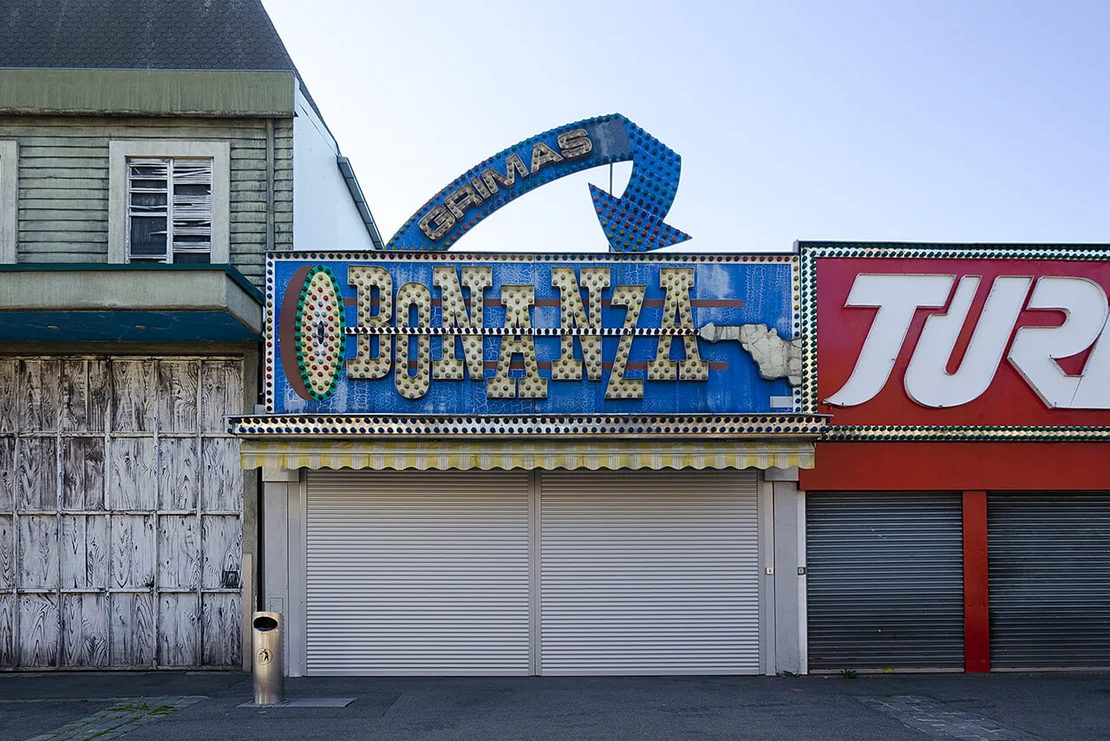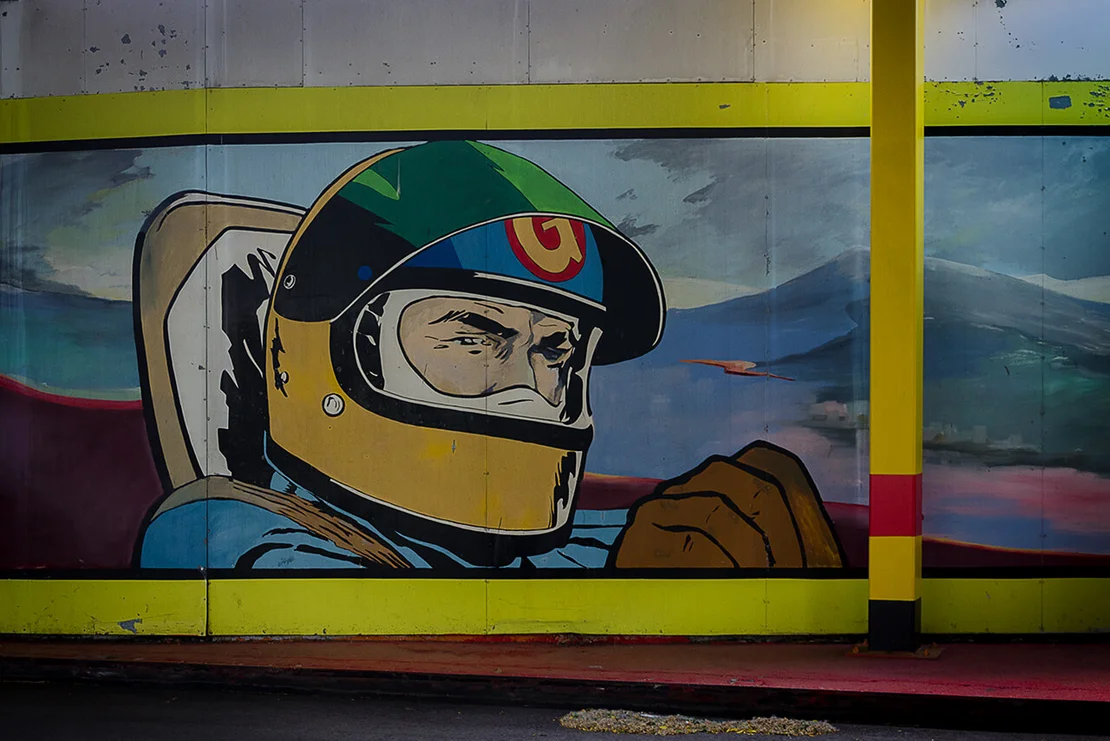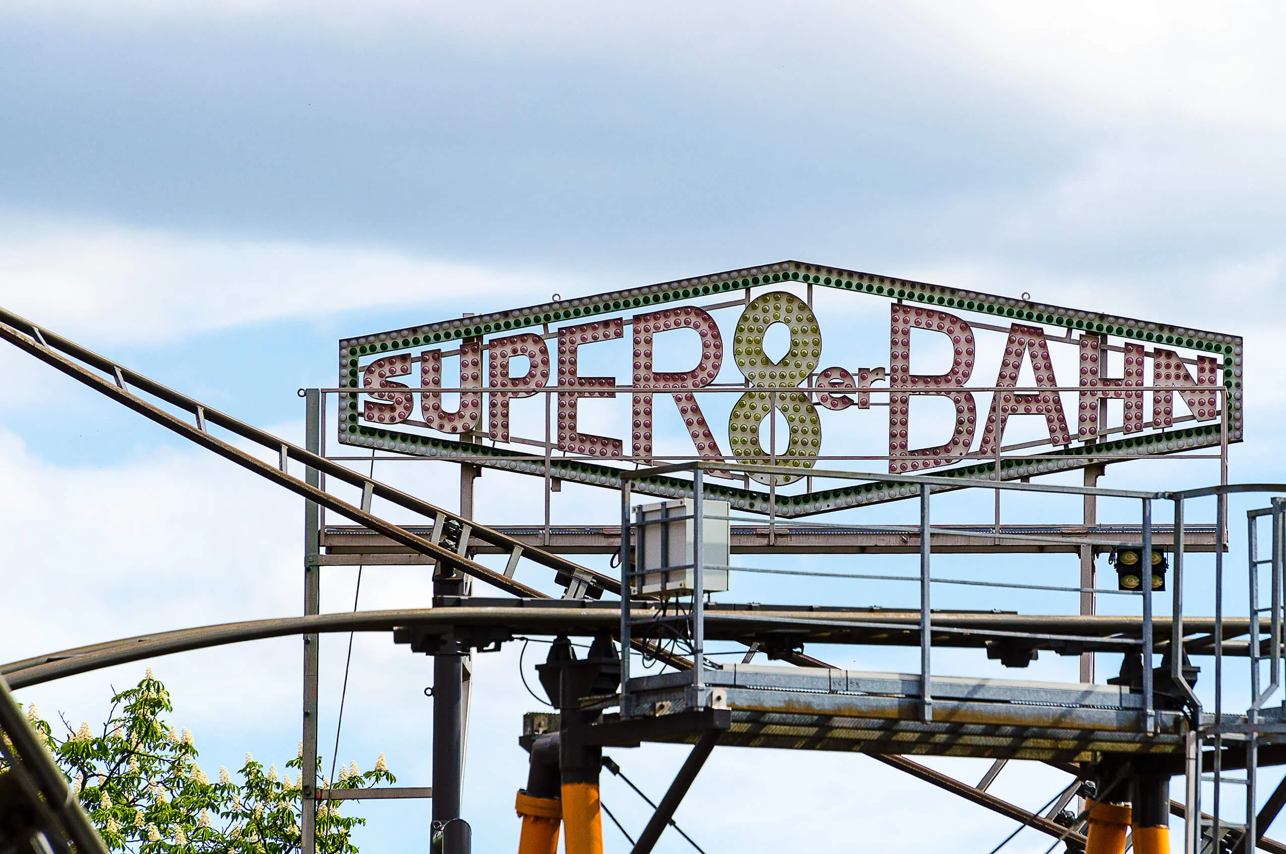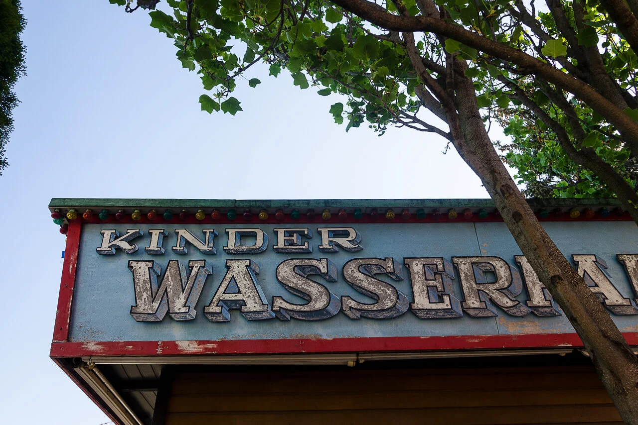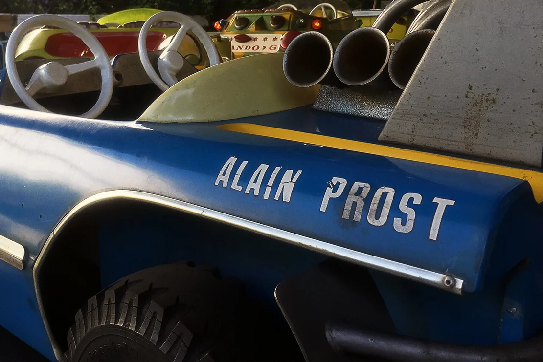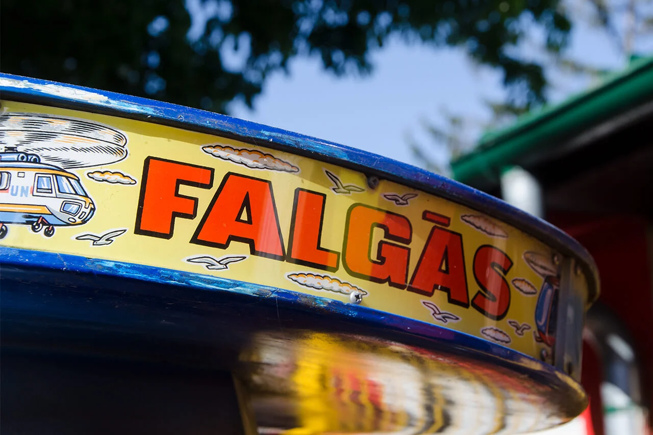 Alongside this continuity runs a rich layering of typographic fragments that recall the 1950s, when the Prater was rebuilt following its destruction in the final weeks of the war. Attractions for younger children, in particular, seem in no hurry to adapt to contemporary aesthetics: racing cars still bear the names of Formula One drivers whose careers ended in the 1980s, while fuel is dispensed beneath the emblem of a brand that disappeared from the market at the close of the last century.