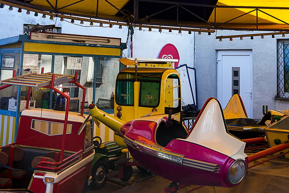 However evocative the older rides may be in their nostalgic charm, they cannot obscure the fact that the Prater is in a state of continual transformation. Attractions are erected and dismantled; with each season, new and ever more spectacular rides are introduced. In between lie residential buildings, workshops, and storage spaces.