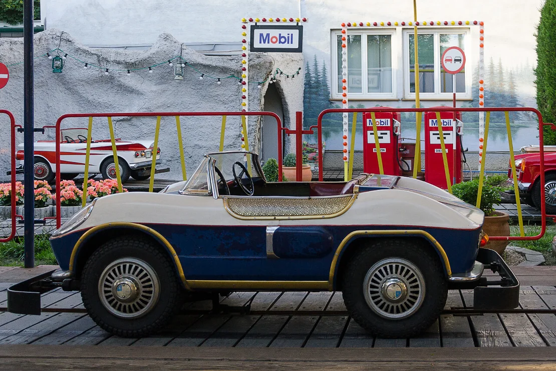 The two trains, each composed of two carriages, accommodate fourteen passengers apiece and are accompanied by so-called brakemen, whose role is to ensure the safety of the approximately 100,000 visitors who ride the attraction each year. Those in search of thrills may find themselves underwhelmed—the journey is never truly perilous. Its appeal lies elsewhere: in a fleeting return to one’s own childhood, a quiet resonance that gives the ride its enduring charm.