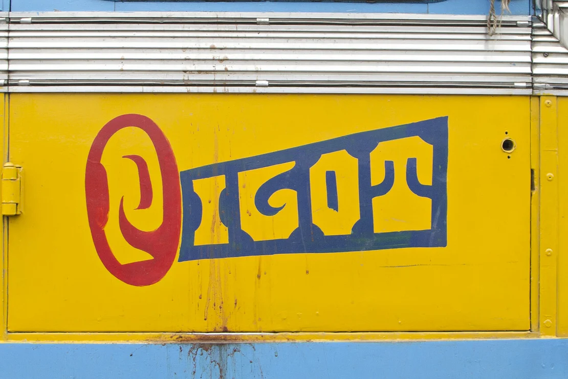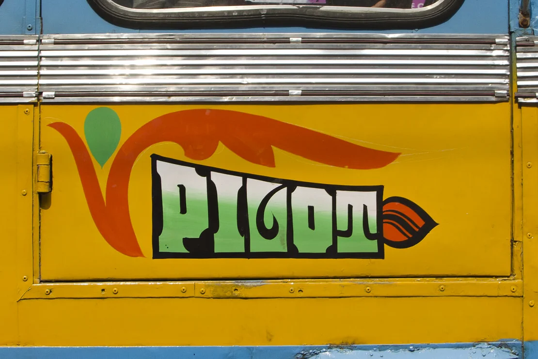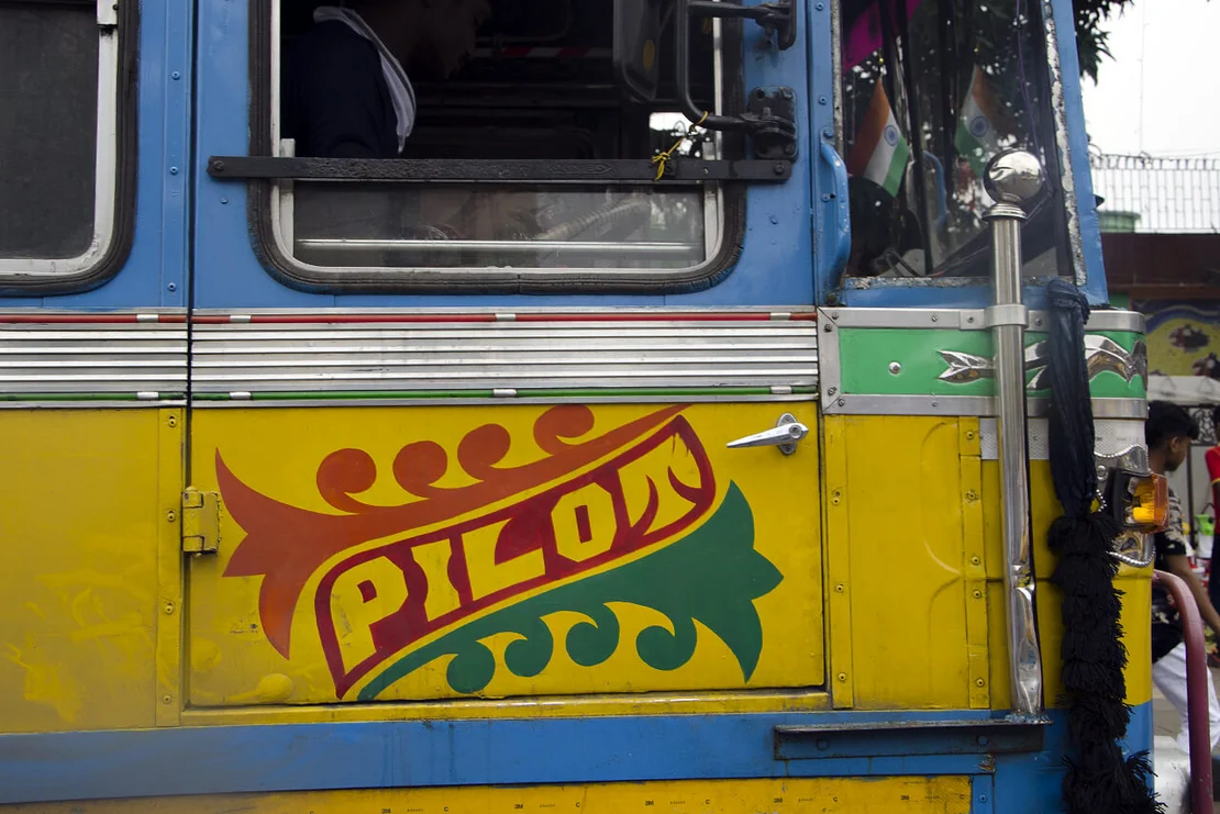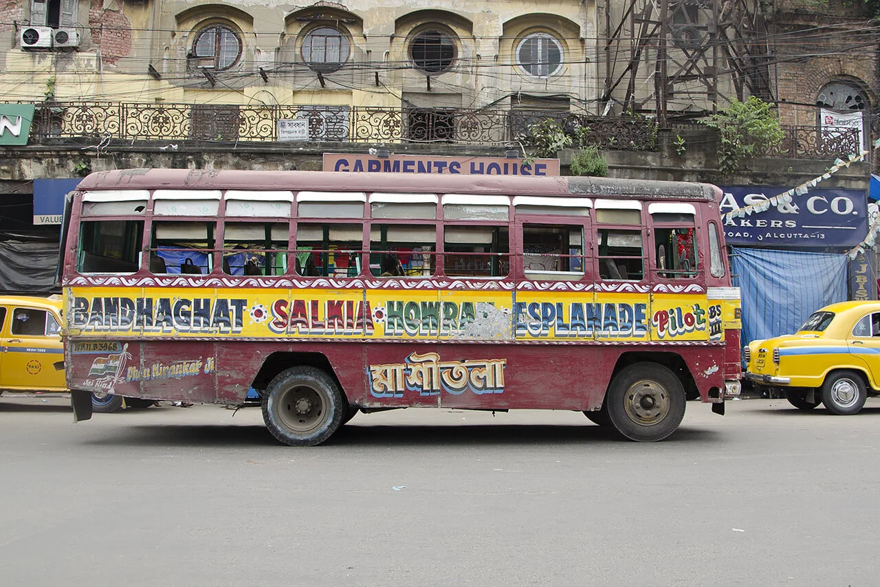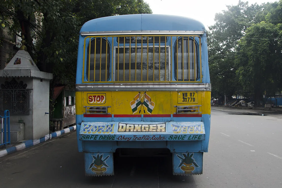 No two of these meticulously crafted inscriptions are alike. Each is hand-painted, frequently embellished with floral motifs or other decorative elements. These vivid and highly individual bus letterings are a distinctive feature of the city and contribute to the visual character of the so-called“City of Joy”.