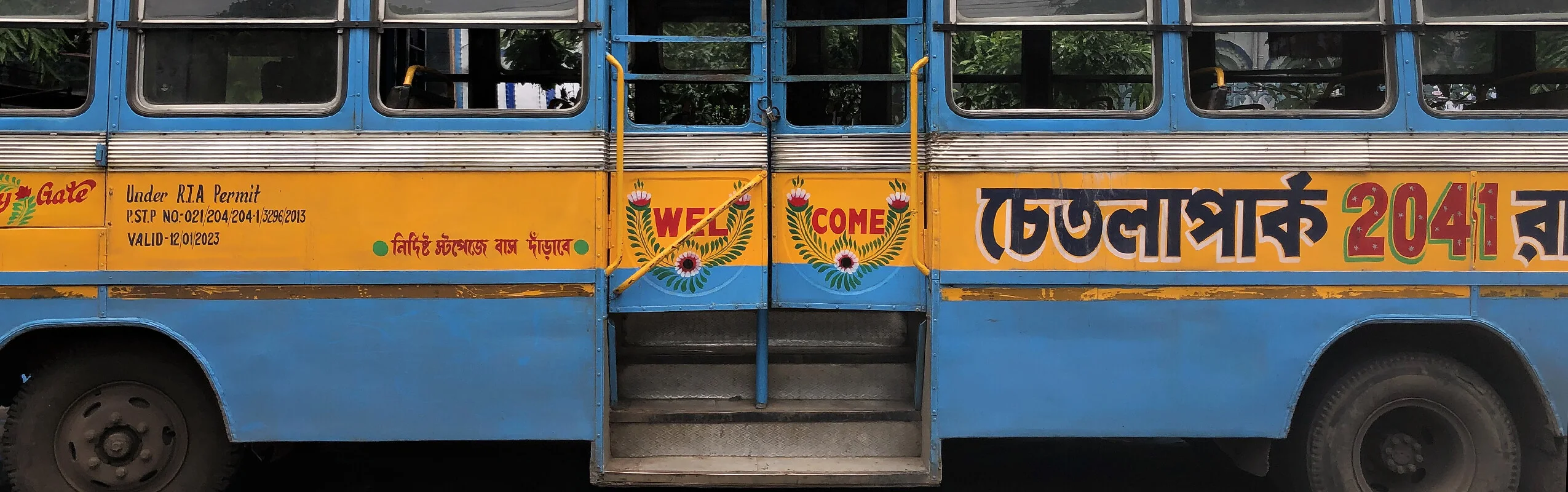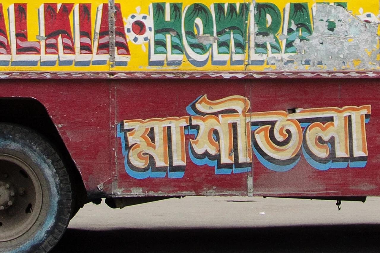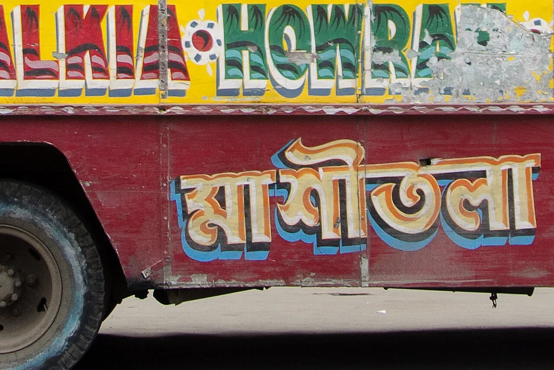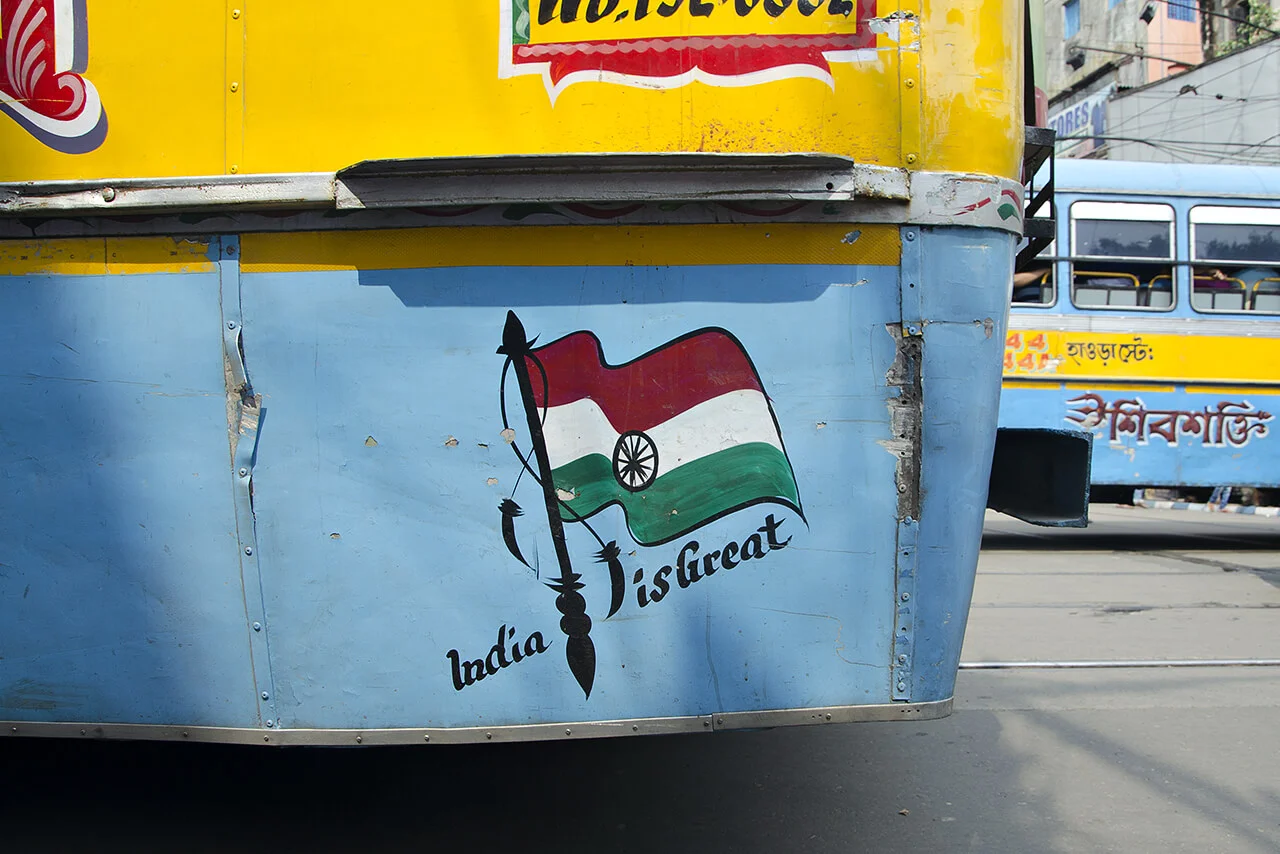 No two of these meticulously crafted inscriptions are alike. Each is hand-painted, frequently embellished with floral motifs or other decorative elements. These vivid and highly individual bus letterings are a distinctive feature of the city and contribute to the visual character of the so-called“City of Joy”.