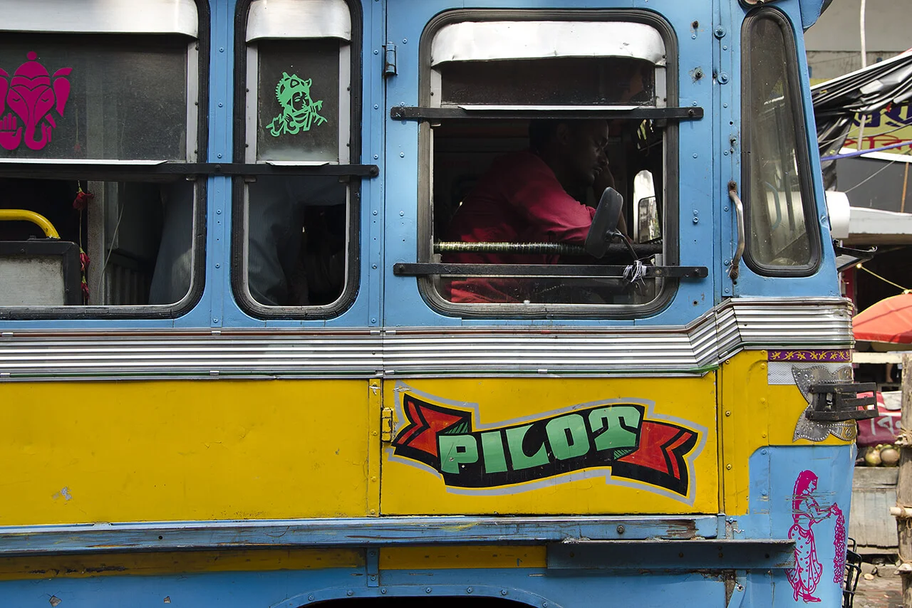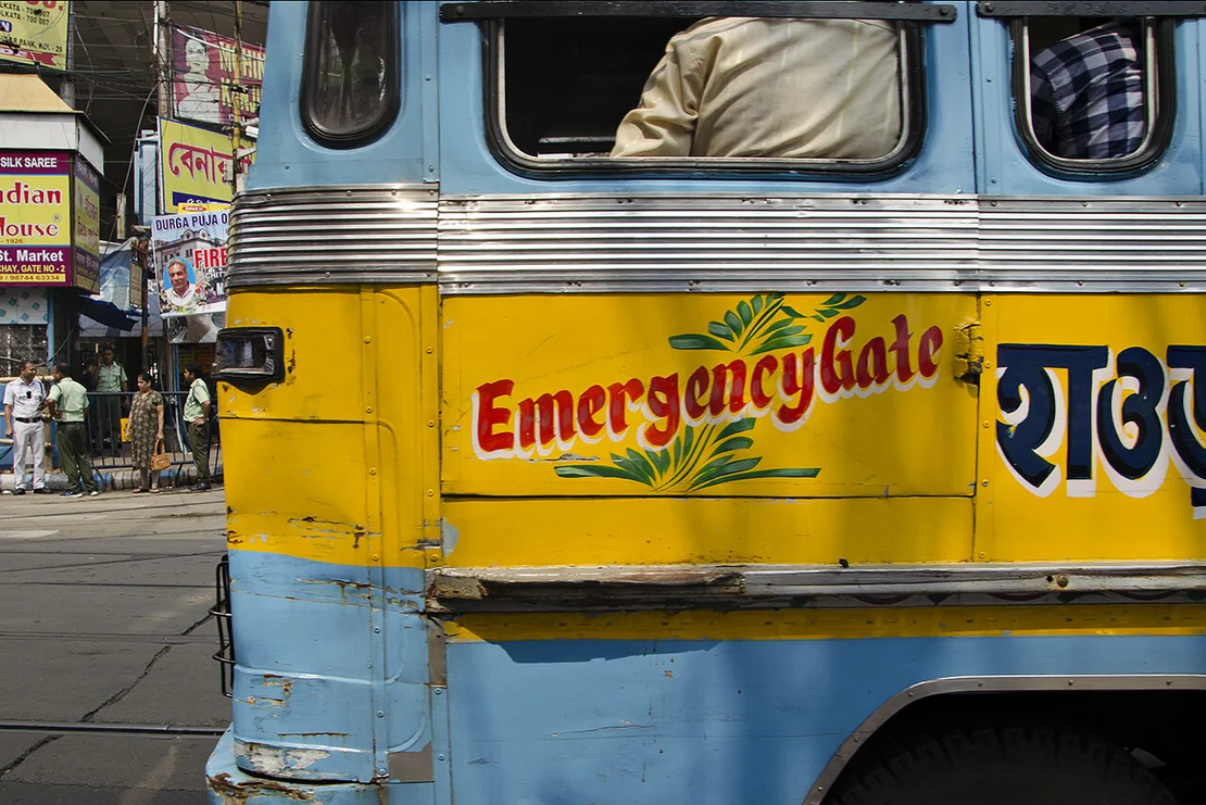 Kolkata seems to be full of pilots. At least if one follows the inscriptions on its public buses. On the driver’s side door, the word“Pilot” is often painted in bold letters, while the opposite side prominently bears the designation“Emergency Gate.”