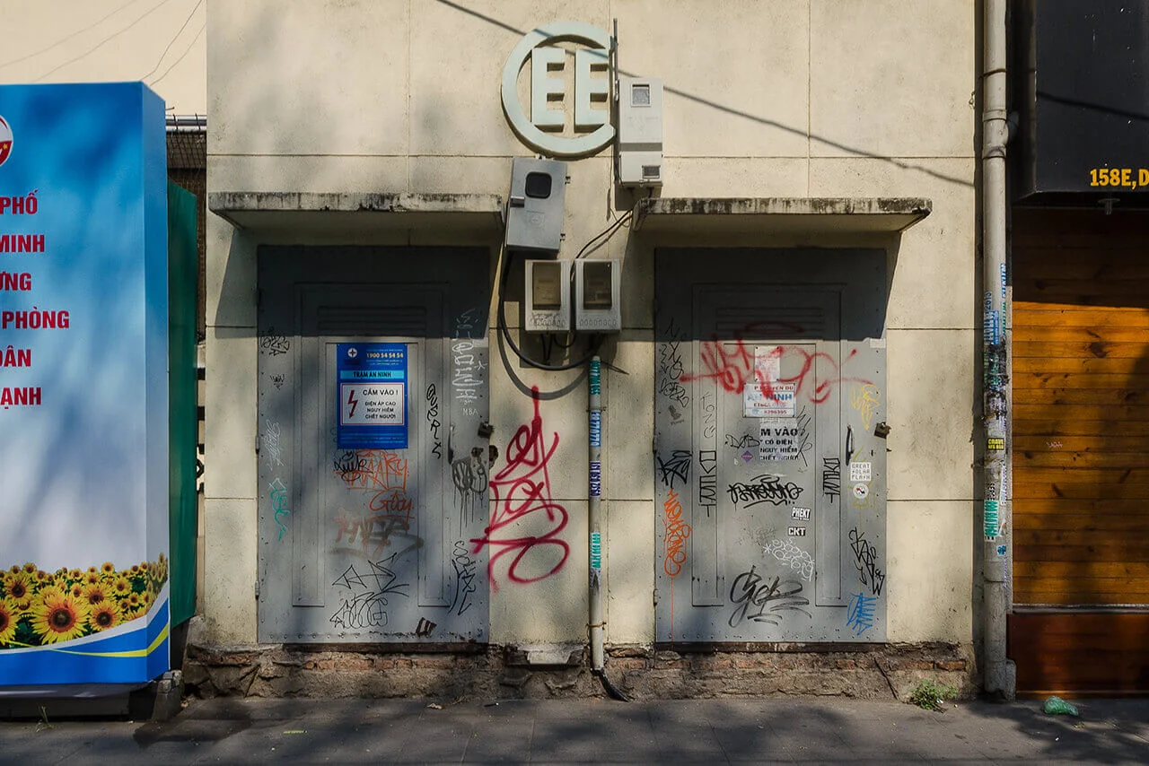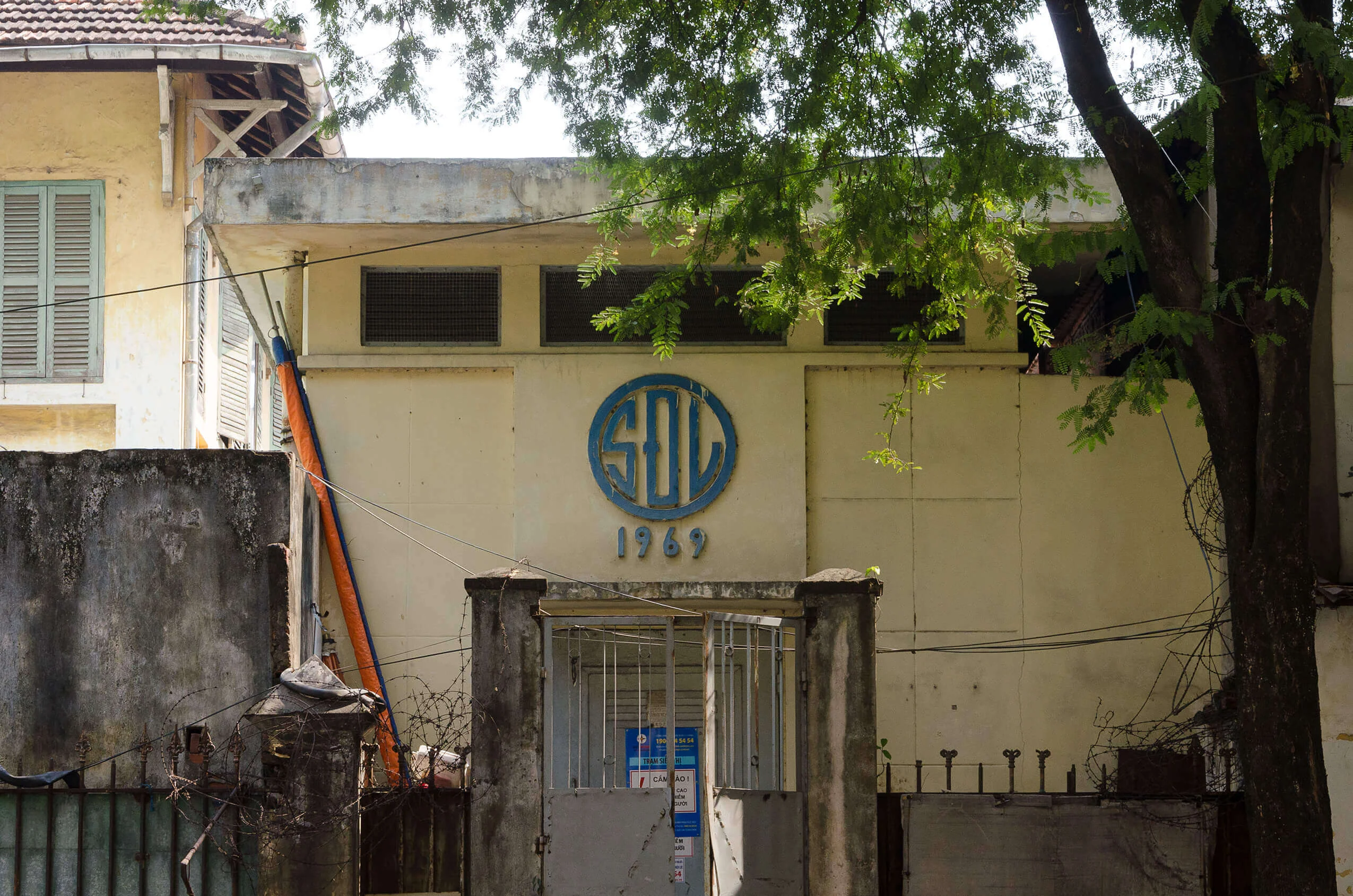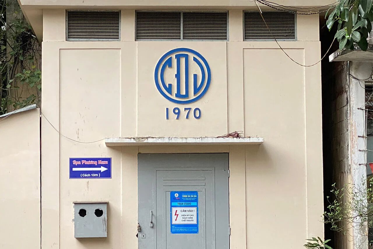Its distinctive logo, with its characteristic lettering, still adorns many of these modest structures. Although responsibility has since passed to Vietnam Electricity (EVN), the stations appear to be carefully maintained to this day. The dates inscribed on their façades offer a subtle indication of the many transformations the city has undergone over the decades.
