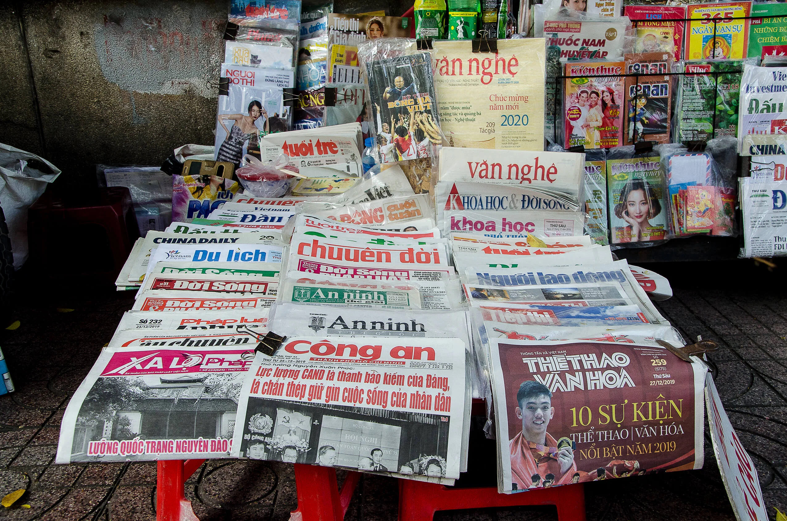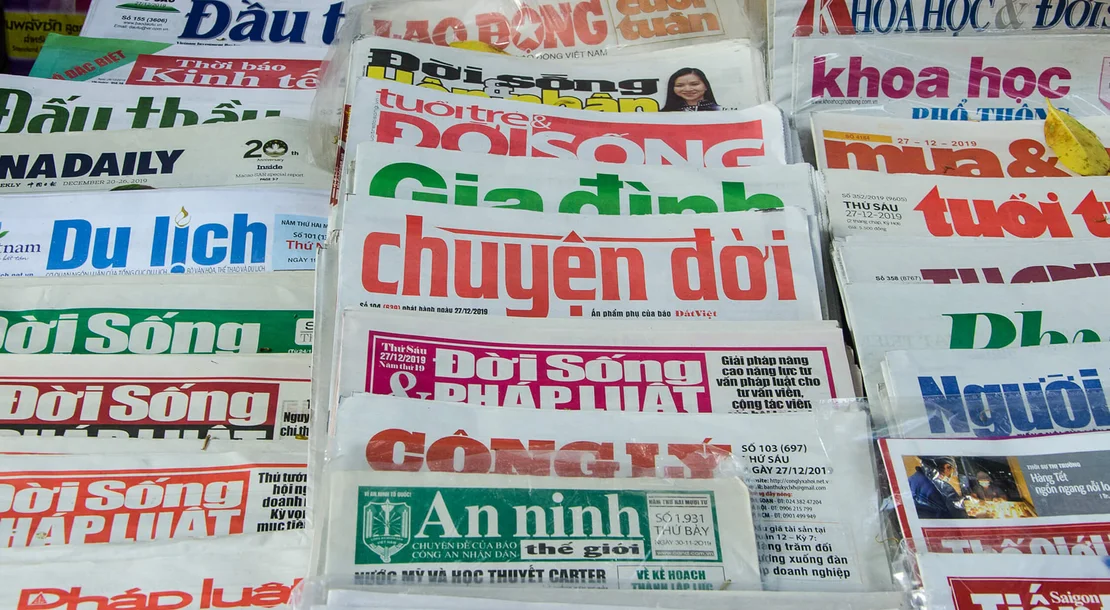 A chance discovery not far from the memorial to Thích Quảng Đức— who set himself alight in Saigon on 11 June 1963 in protest against the persecution of Buddhists: at a roadside stall, the colourful newspaper headlines immediately draw attention.